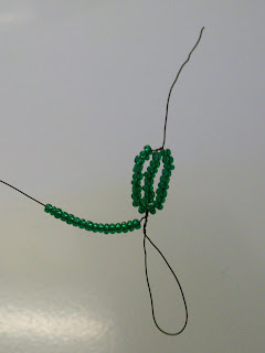 Дальше делаем такую же петельку и закрепляем её между следующими 2 бисеринами