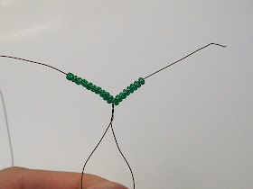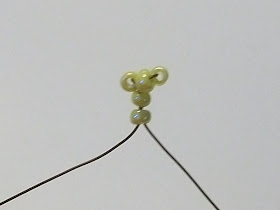 Дальше на длинный конец проволоки набираем 4 бисерины