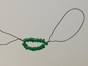 Потом на длинный конец проволоки (он будит рабочим) набираем нужное количество бисера и делаем вторую петельку