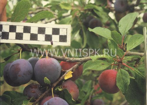Плоды сливы крупные, весом 30–35 г, фиолето-во-бурые, с сильным восковым налетом. Мякоть желтая, сочная, хорошего сладкого вкуса (4,5 балла). Это один из лучших сортов для получения чернослива. Опылителей не требует. Урожайность – 25–30 кг с дерева. Плодоносить начинает на 3–4-й год.