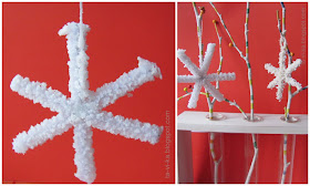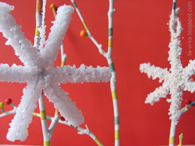 1. Если вы хотите получить цветные снежинки, добавьте в раствор буры краситель, либо используйте цветные ершики для чистки курительных трубок.